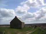 There was now only four miles to go, starting with a steep at times climb immediately after the North York Moors Railway level crossing. Grosmont was very busy and the station was packed. There was some shunting going on and people were standing two or three deep all along the platform, over the crossing and along the side of the line. As we made our way up to Snaith Moor above the village the weather slowly deteriorated and looking over our shoulders we could see rain. It finally caught up with us when we were just about slap bang in the middle of crossing the moor. It was also about now that we had our first definite sight of the sea. We possibly spotted it from Glaisdale Rigg, but it wasn't certain. However on Snaith Moor there was no doubt as we looked down Eskdale to Whitby, it's abbey and the sea beyond. It continued raining as we walked down the farm lanes to Intake Farm. When we arrived we took our wet gear off and we were treated to tea and cake. For both of us this was very welcome.