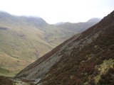 Breakfast complete and packed we left about 9:20. The walk to Ennerdale Water was pleasant and easy. We then started along the south shore. Again the path was alright, but unfortunately swarming with midges. I seemed to fare okay, but David swallowed a few and I heard him coughing and spluttering behind me. After about a mile they got fewer and finally disappeared, however the path then changed and for the remainder of the lake the going was tough and at Robin Hood's Chair we were all but scrambling.