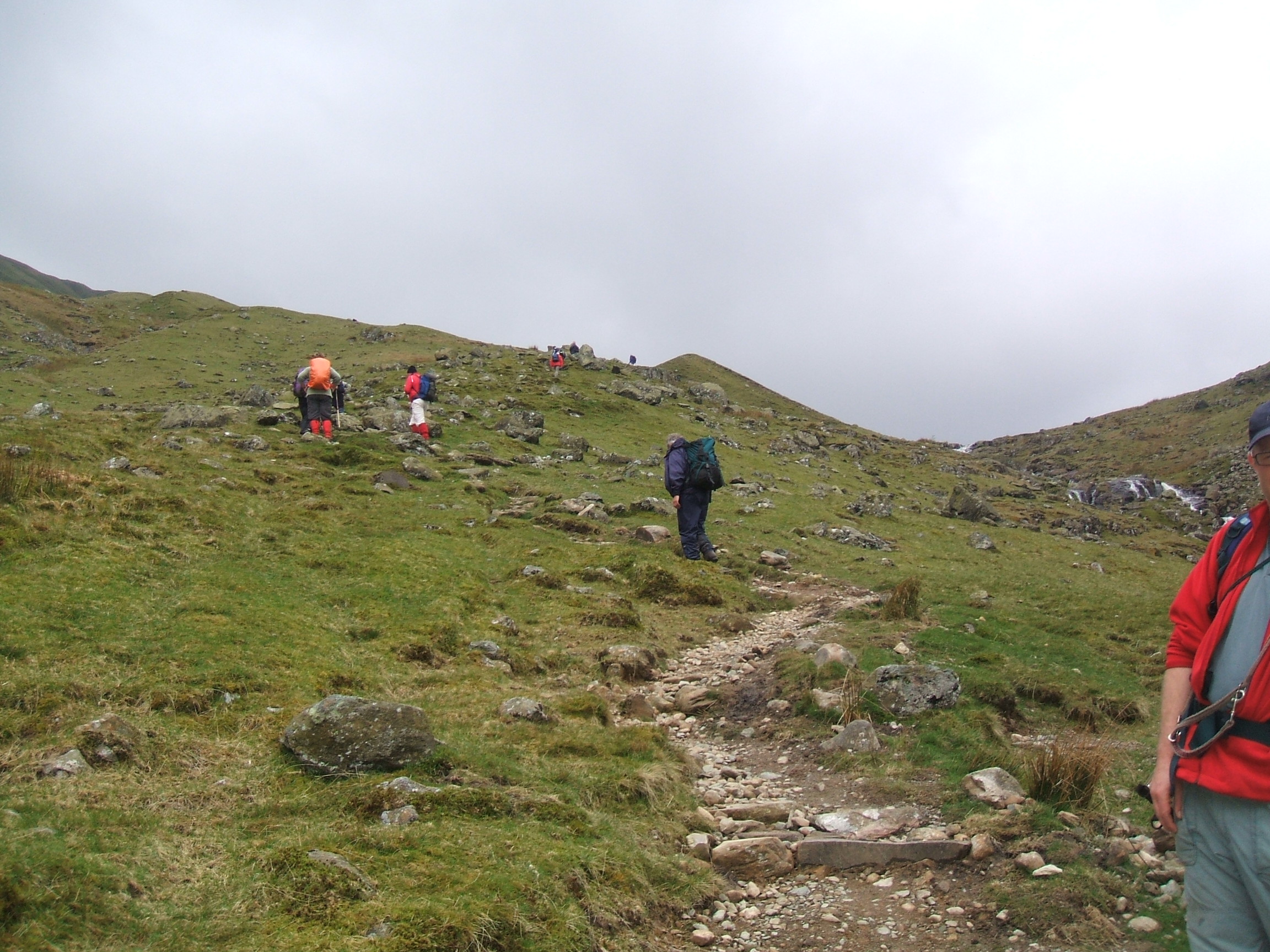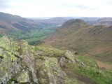 We finally started walking at 10:00. The morning's climb was functional, we soon got into a rhythm and two hours later we had managed four miles and 700m of climbing. Half way up we passed the foreign group we saw two days ago. I've now revised my opinion and think they are Dutch. We made steady progress past them and didn’t see them again until well after we had arrived in Grasmere. The 'big' climb had ended with a sharp pull to the top of an escarpment called 'Lining Crag'. This gave a glorious view westwards and would have been worth a stop, however the weather had become windy and neither of us felt like hanging around too long. Therefore, after a quick halt almost in deference to the panorama, we started the final half mile to the high point of Greenup Edge.