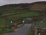 We finally reached a track leading to a shooting lodge. It was now gone 1:00 and we wanted to eat lunch, but it was too wet, cold and windy to stop. Therefore we carried on, passing the farm at Ravenseat. It was still cold and wet, but after another 10 minutes we decided we had to eat, so we hid from the elements behind a barn and scoffed down our sandwiches. I hadn't brought any gloves on the trip, my hands were freezing and this made this basic task of feeding myself a slow process.